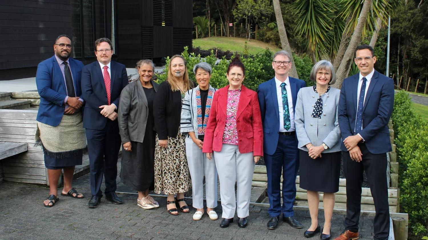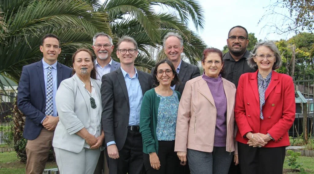 Counsellor Tessa Scrine and the National Spiritual Assembly elected at the National Convention April 2022. Left to right: Kim Te’o, Huti Watson, Marc Rivers, Vahid Qualls, Shiva Kolodner, Alan Wilcox, Suzanne Mahon, Saia Tu’itahi, Tessa Scrine. Not present: Sione Tu’itahi.