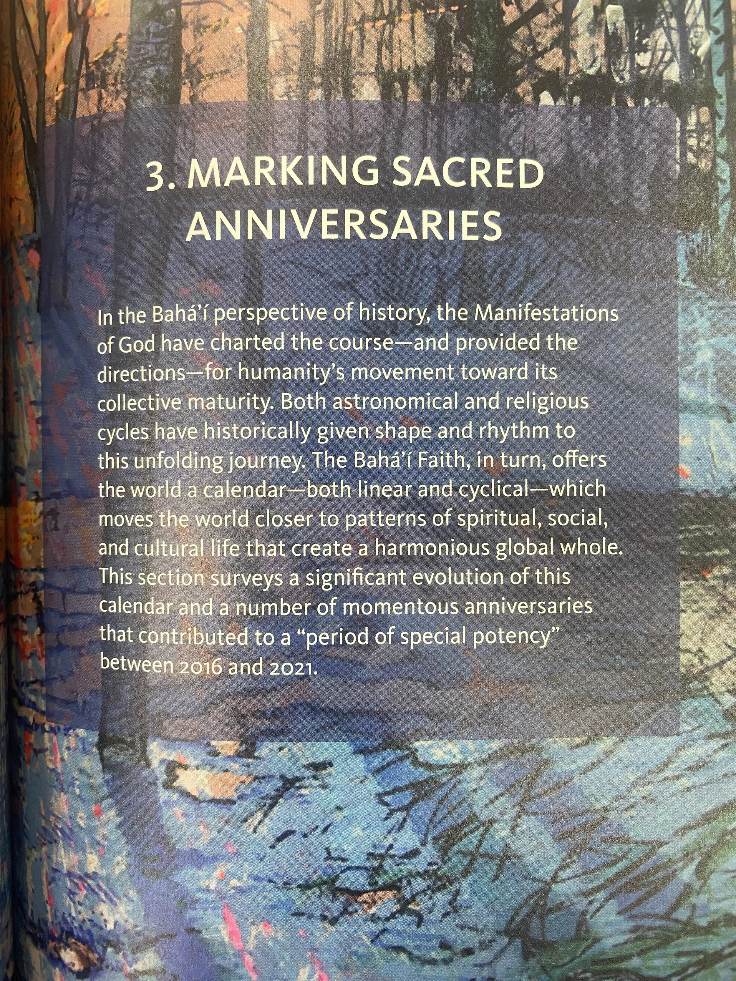 Covering the years 2006 to 2021, this beautifully designed 455-page volume provides a glimpse into a period of remarkable development within the worldwide Bahá’í community. It highlights the growing efforts of individuals and communities inspired by Bahá’u’lláh's teachings to contribute to the spiritual and social progress of humanity.